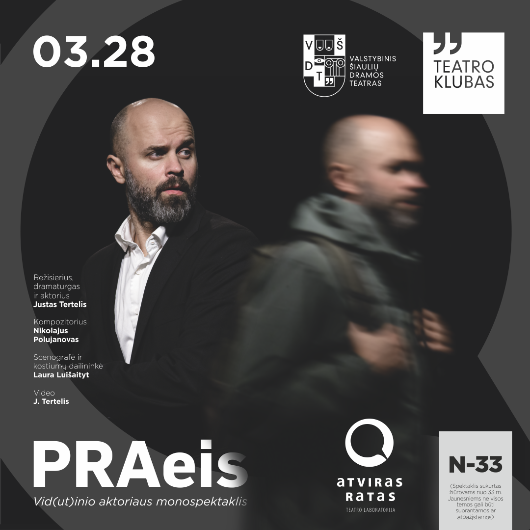 Antrasis, Tarptautinei teatro dienai skirtas ciklo renginys vyks kovo 28 d. Visus teatro mylėtojus kviesime į Justo Tertelio monospektaklį „PRAeis“, po kurio vyks susitikimas ir pokalbis su spektaklio autoriumi bei Valstybinio Šiaulių dramos teatro aktoriais. Daugybę teatro festivalių apkeliavęs spektaklis atvirai ir su humoru reflektuoja aktoriaus profesiją, kūryboje ir gyvenime egzistuojančius paradoksus, laikinumo ir prasmingumo temas, persmelkiančias tiek profesinius, tiek asmeninius pasirinkimus. Pokalbio metu spektaklio režisierius ir aktorius Justas Tertelis drauge su VŠDT aktoriais pratęs spektaklyje paliestas temas ir ieškos atsakymo į šiandien vieną svarbiausių klausimų, kodėl vis dar einame į teatrą.