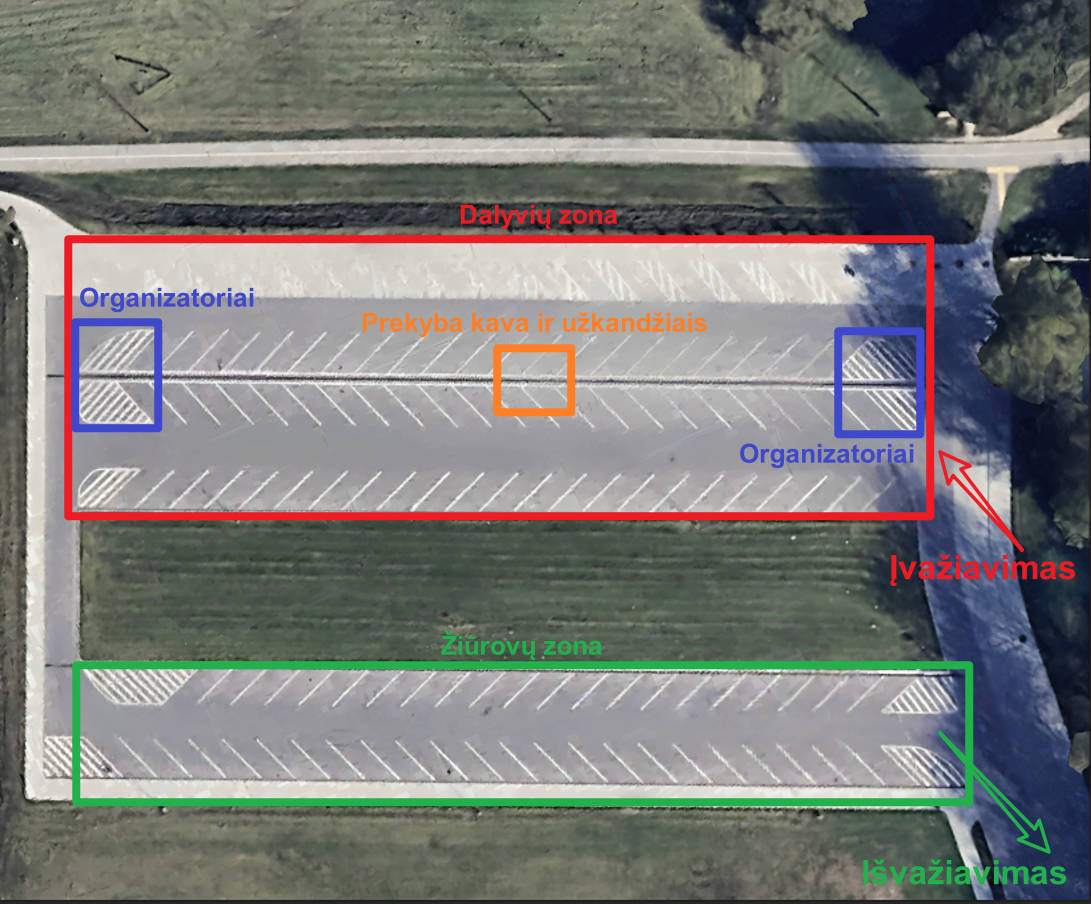 Renginio metu numatyta 1 vieta teikti viešojo maitinimo paslaugas be prekybos alkoholiniais gėrimais, kai užimamas plotas iki 9 kv. m (kava iš automobilio). Data, laikas: 2026 m. gegužės 17 d., nuo 12.00 val. iki 17.00 val. (schema).
