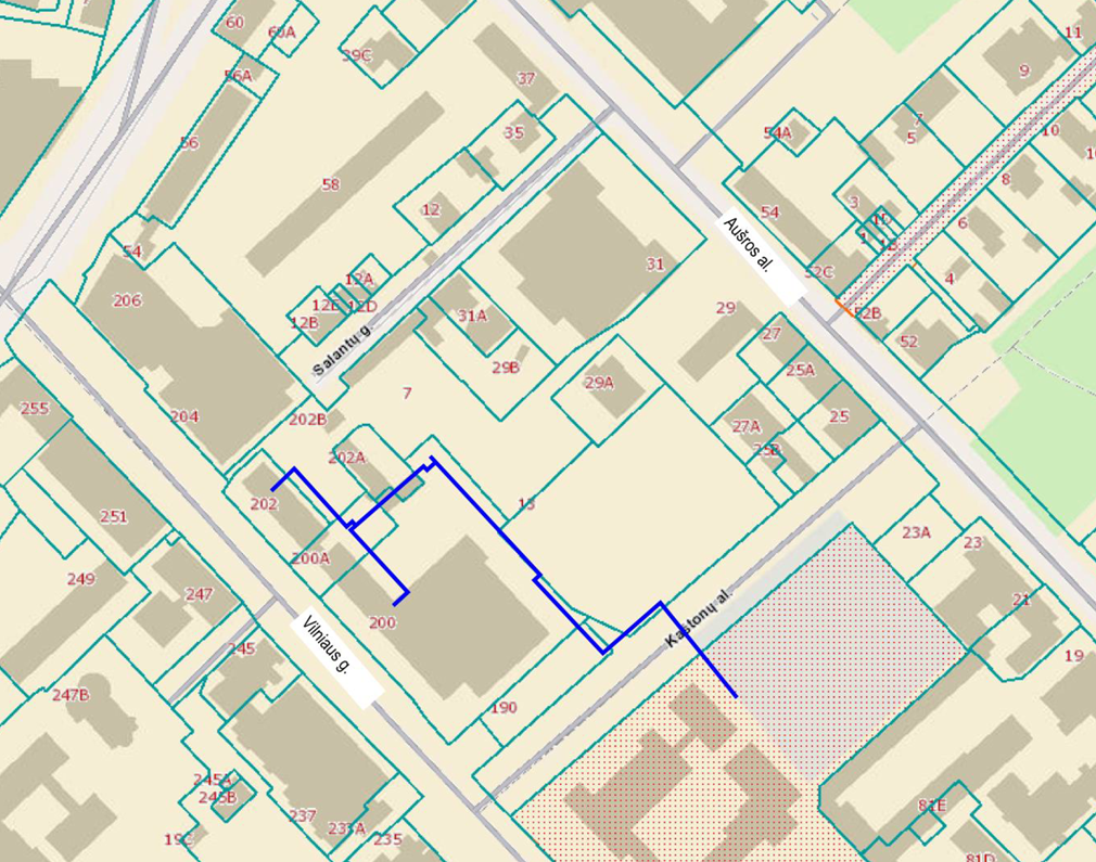 Žemės sklypo kadastro Nr., sklypo geografinės koordinatės (X, Y) – nėra, X: 6200381, Y: 456795; 2901/0011:511, X: 6200375, Y: 456789; 2901/0011:424, X: 6200359, Y: 456819; 2901/0011:429, X: 6200333, Y: 456838; 2901/0011:247, X: 6200340, Y: 456891; 2901/0011:481, X: 6200381, Y: 456825; 2901/0011:229, X: 6200311, Y: 456915; 2901/0011:224, X: 6200318, Y: 456943; 2901/0011:537, X: 6200293, Y: 456966.