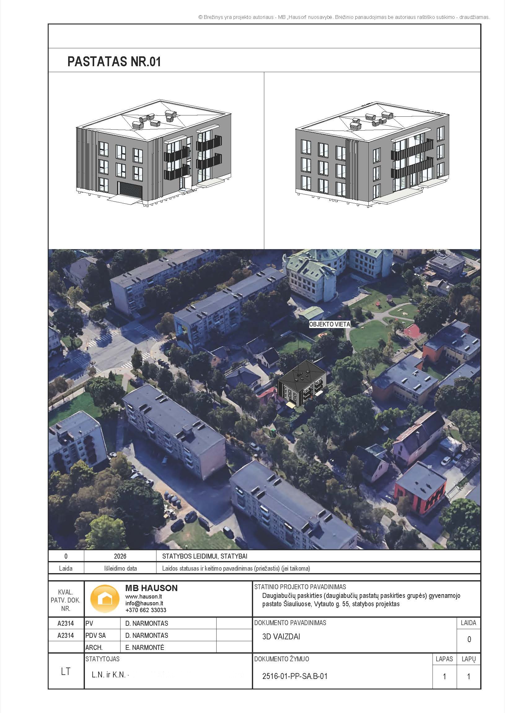 Daugiabučių paskirties gyvenamojo pastato (daugiabučių pastatų paskirties grupės) Vytauto g. 55, Šiauliuose, statybos projektas.