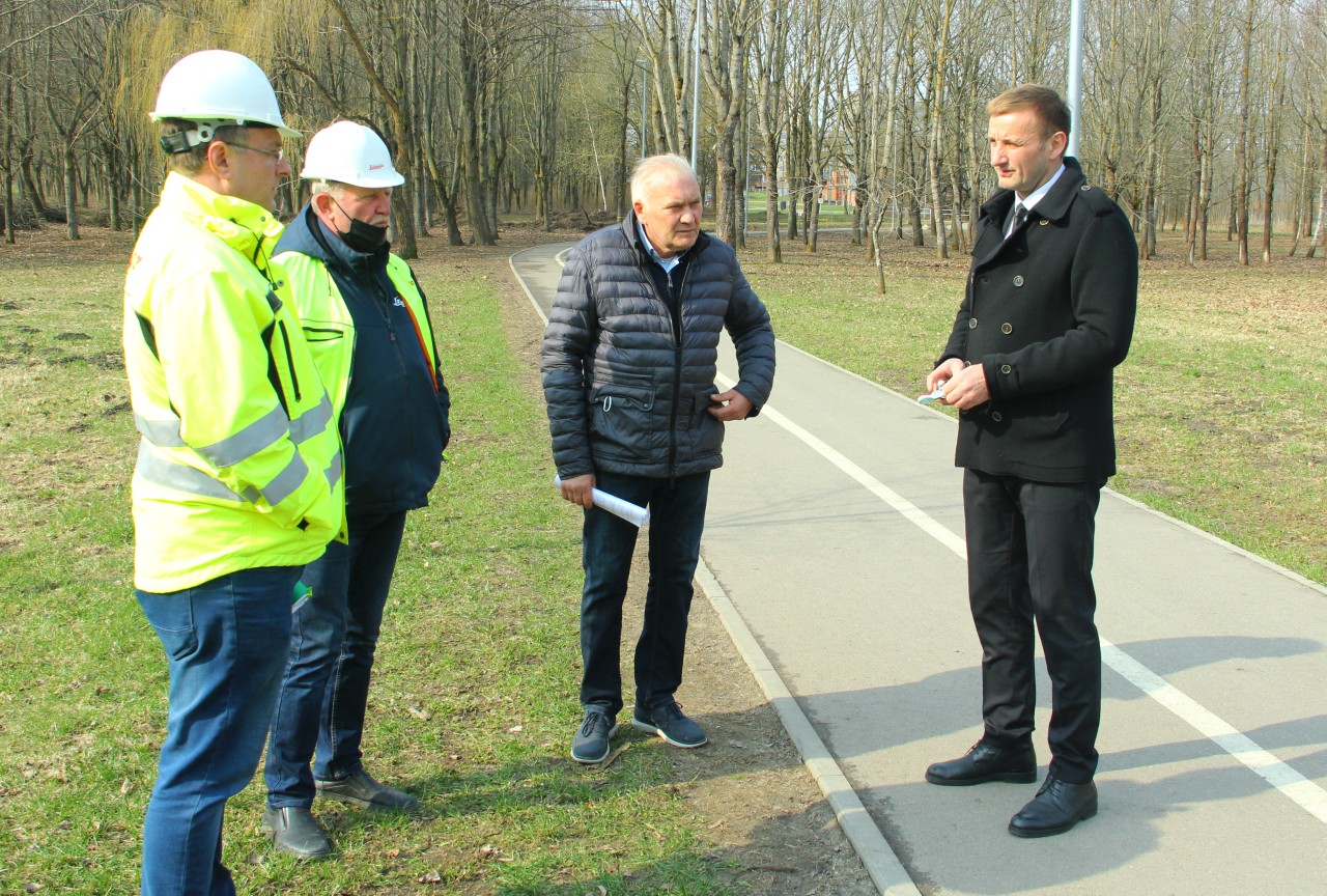 Šiaulių meras Artūras Visockas, kartu su bendrovės „Limega“ direktoriumi Vytautu Vilku ir kitais rangovų atstovais, apžiūrėjo naujų parko takų tiesimo darbus, aptarė finansavimo klausimus ir įvykdymo terminus.