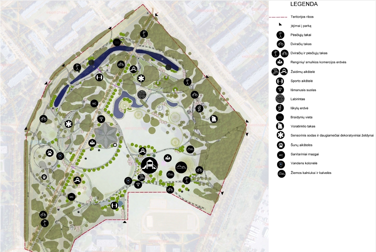 Numatyta įrengti modernų apšvietimą, vandens gertuves, WC zonas, poilsio suoliukus, o visos erdvės bus stebimos vaizdo kameromis, prijungtomis prie pažangios miesto koordinavimo sistemos.