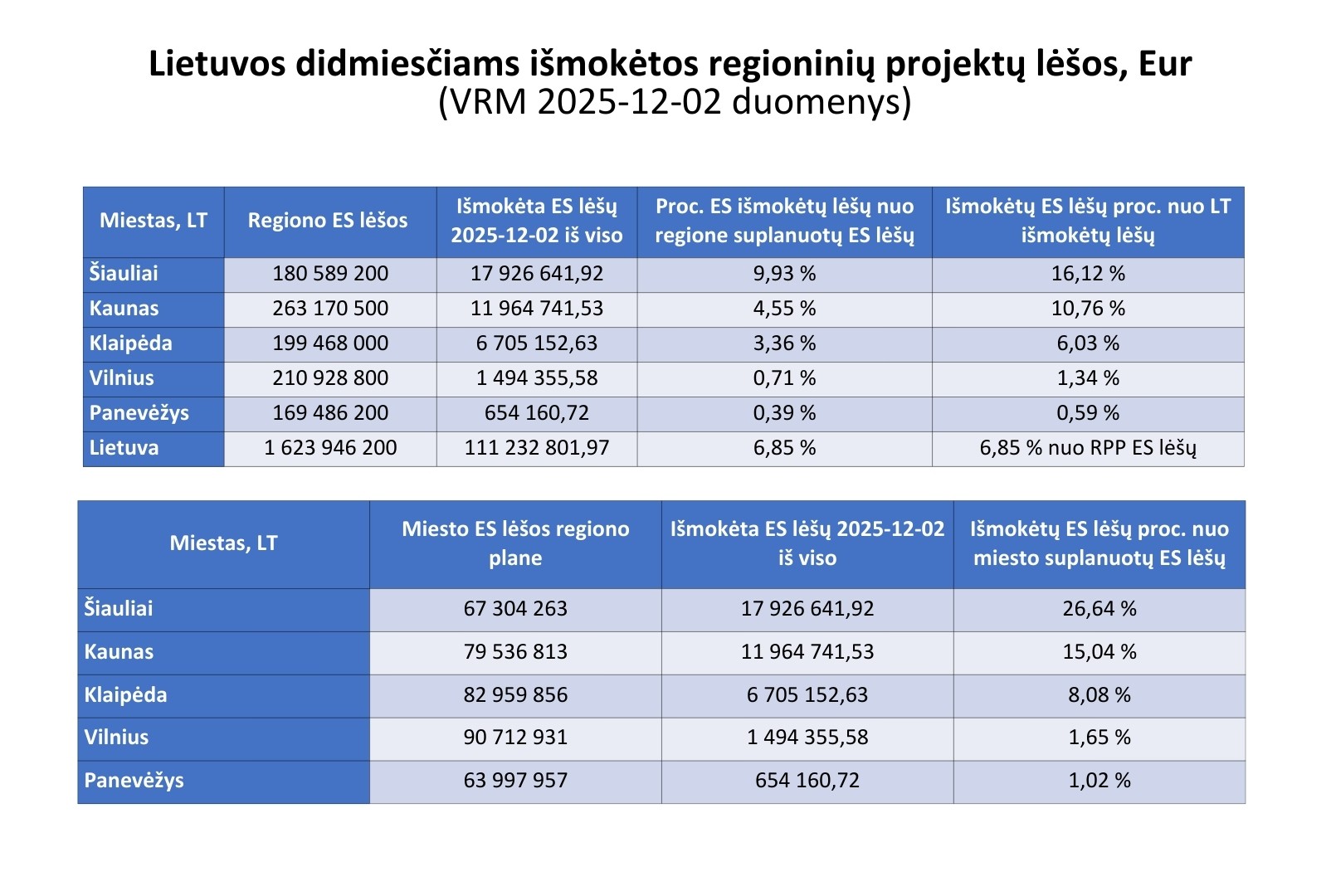 Šiaulių regionas Lietuvoje išsiskiria ne tik sudarytų sutarčių skaičiumi, bet ir įgyvendinamų darbų tempu. Pagal projektų vykdytojams išmokėtas Europos Sąjungos lėšas Šiauliai yra tarp lyderių tiek tarp regionų, tiek visų didžiųjų Lietuvos miestų kontekste.