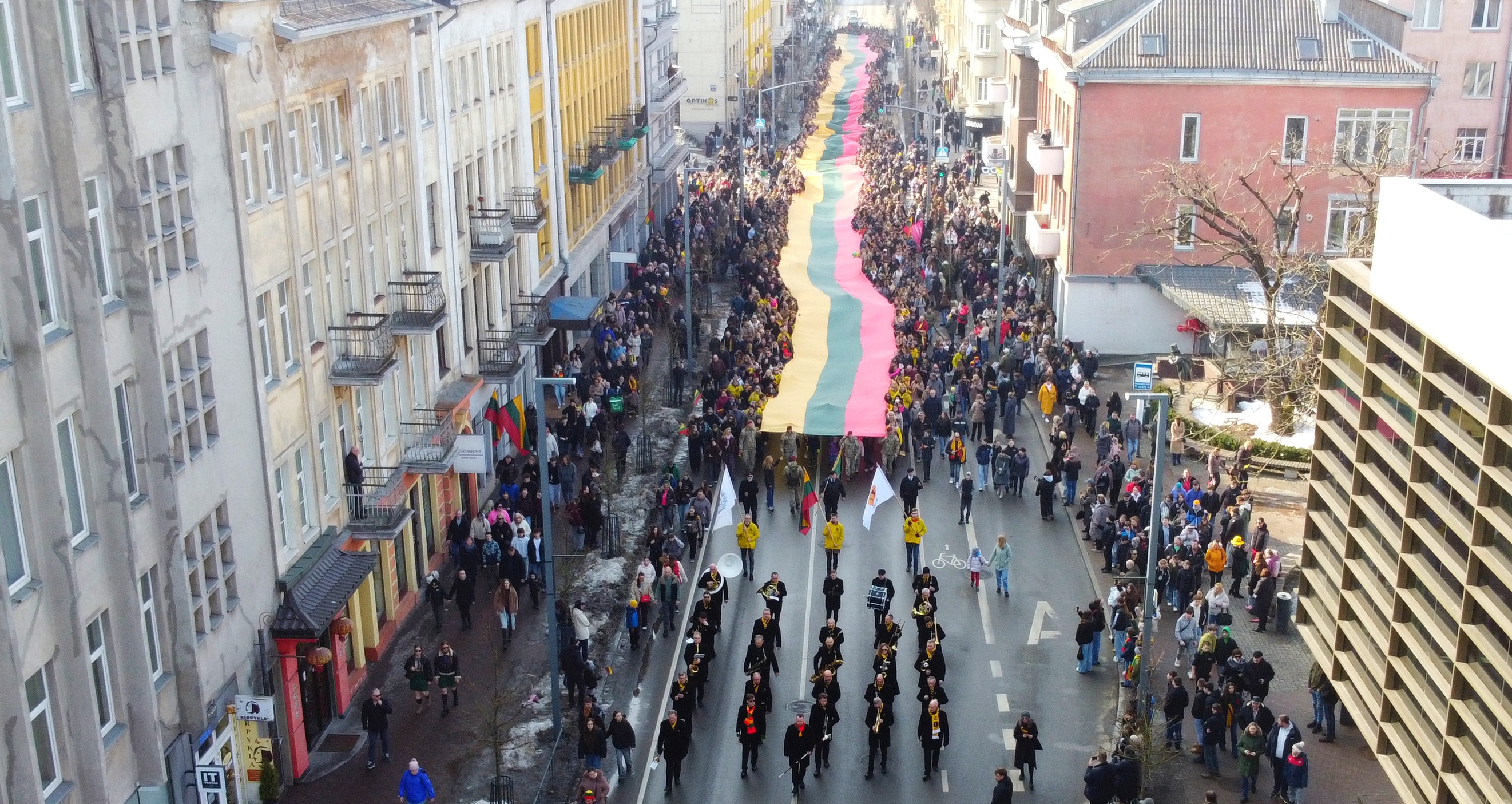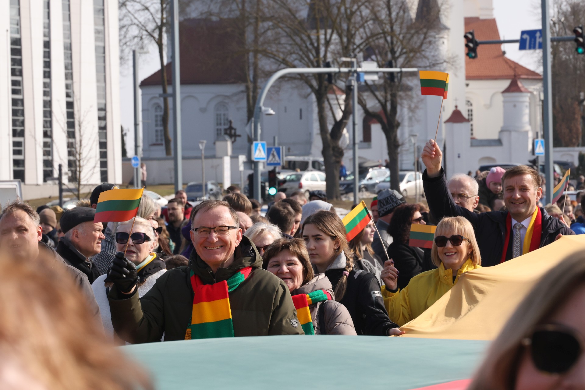 Lietuvos Nepriklausomybės dienos rytą trispalvės žygio „Lietuva mūsų širdyse“ dalyviai rinkosi prie Šiaulių arenos, jau 10.30 val. eisena, nešdama 300 metrų ilgio valstybės vėliavą, pajudėjo link Prisikėlimo aikštės.