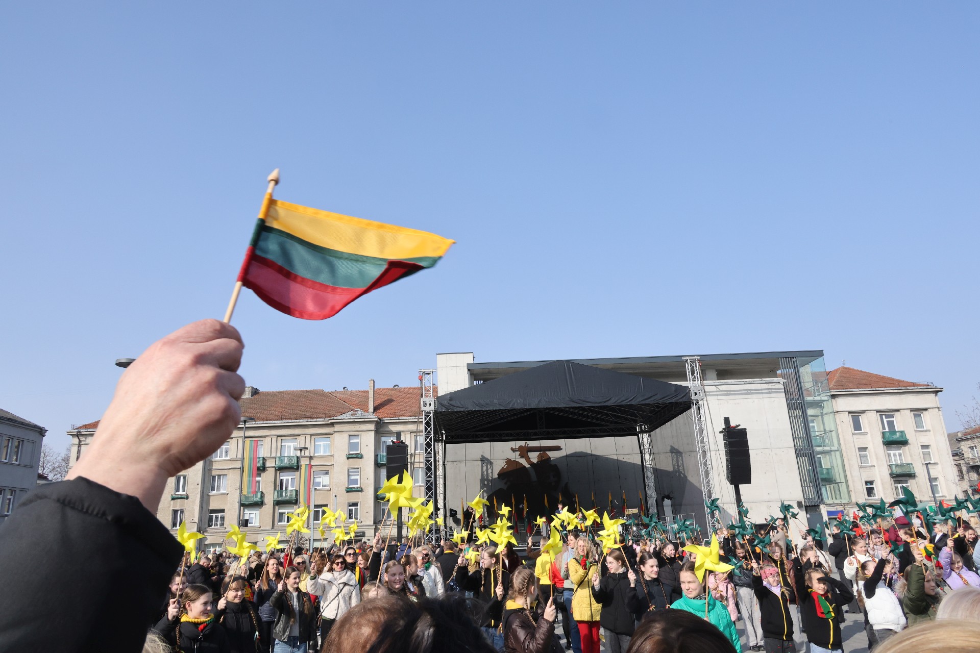 11 val. Šv. apaštalų Petro ir Pauliaus katedroje buvo aukojamos šv. Mišios, o vidurdienį, trispalvės nešėjams pasiekus Prisikėlimo aikštę, vyko pagrindinė šventės ceremonija.