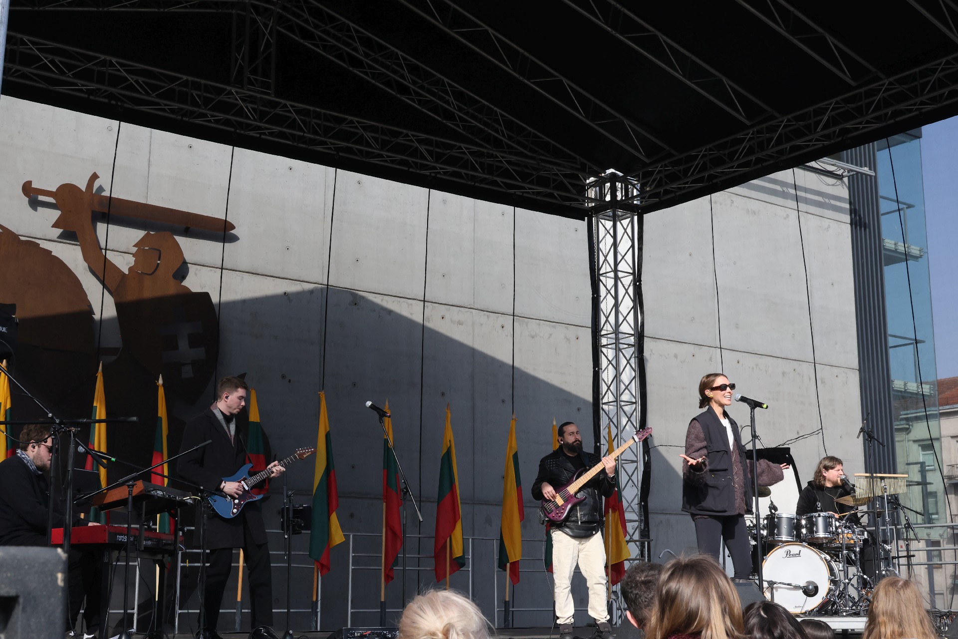 Šventinę programą Prisikėlimo aikštėje pratęsė grupės „Saulės kliošas“ koncertas, kuriame jaukiai skambėjo laisvės dvasią atliepiantys kūriniai.