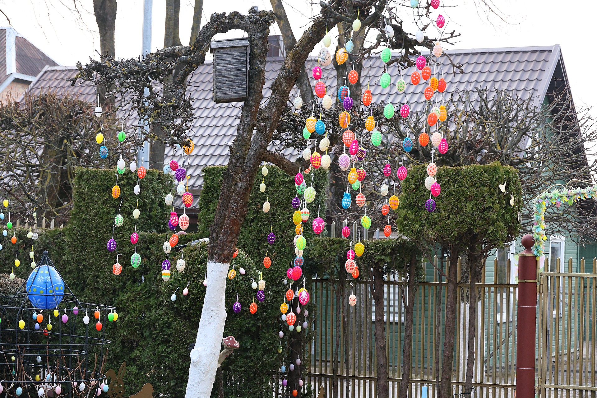 Net du mėnesius ši sodyba (M. Valančiaus g. 6) buvo išpuošta kalėdinėmis girliandomis ir puošmenomis, o dabar iki Atvelykio čia bus Velykų ir pavasario rezidencija.