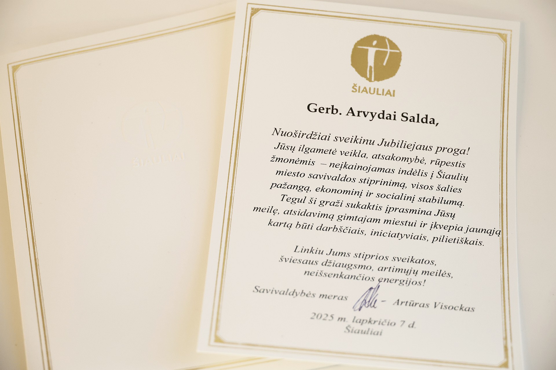Nuo pat pirmųjų Lietuvos nepriklausomybės atkūrimo metų Arvydas Salda aktyviai įsijungė į Šiaulių miesto savivaldos formavimą, jai priskirtų funkcijų vykdymą ir savivaldos sistemos tobulinimą. 1991 metais, vienu sunkiausių šalies ekonomikos laikmečiu, jis buvo išrinktas antruoju Šiaulių miesto meru ir savo darbštumu bei sumanumu padėjo Šiaulių miestui siekti ekonominio ir socialinio stabilumo. Jo idėjos ir darbai iki šiol tęsiami.