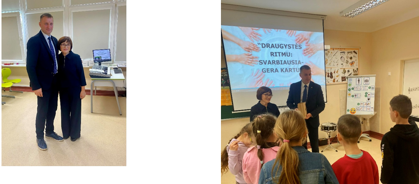 Meras Artūras Visockas ir Švietimo skyriaus vedėjo pavaduotoja Živilė Nakčiūnienė dalyvavo Metų mokytojos Laimos Kulšytės atviroje muzikos pamokoje „Draugystės ritmu“. Pamokoje atsiskleidė metodiškai nuoseklaus, kūrybingo ir kantraus mokytojos darbo rezultatai: vaikai džiaugsmingai atliko visas mokytojos parengtas muzikines užduotis, ritmavo ir muzikavo.