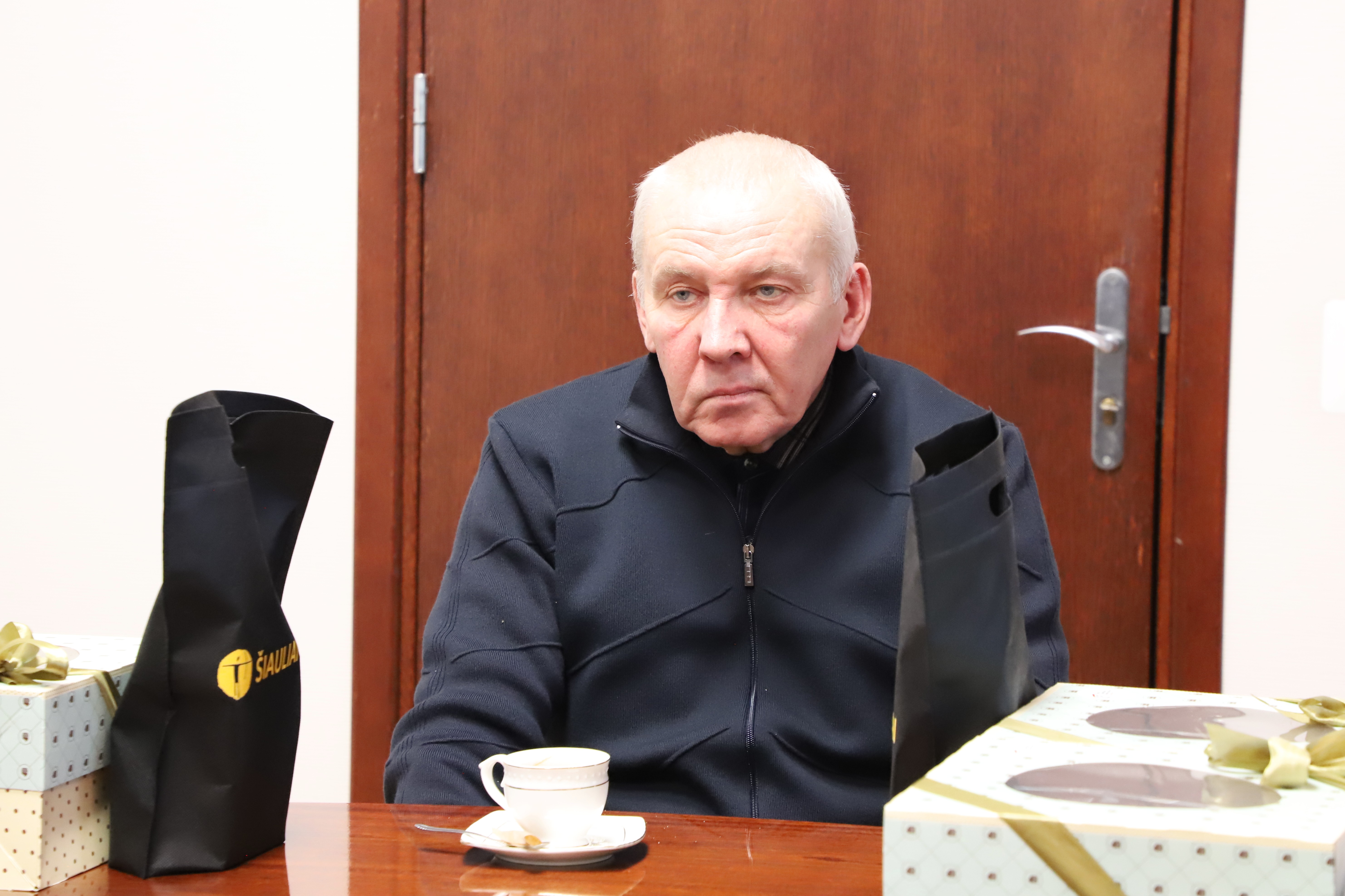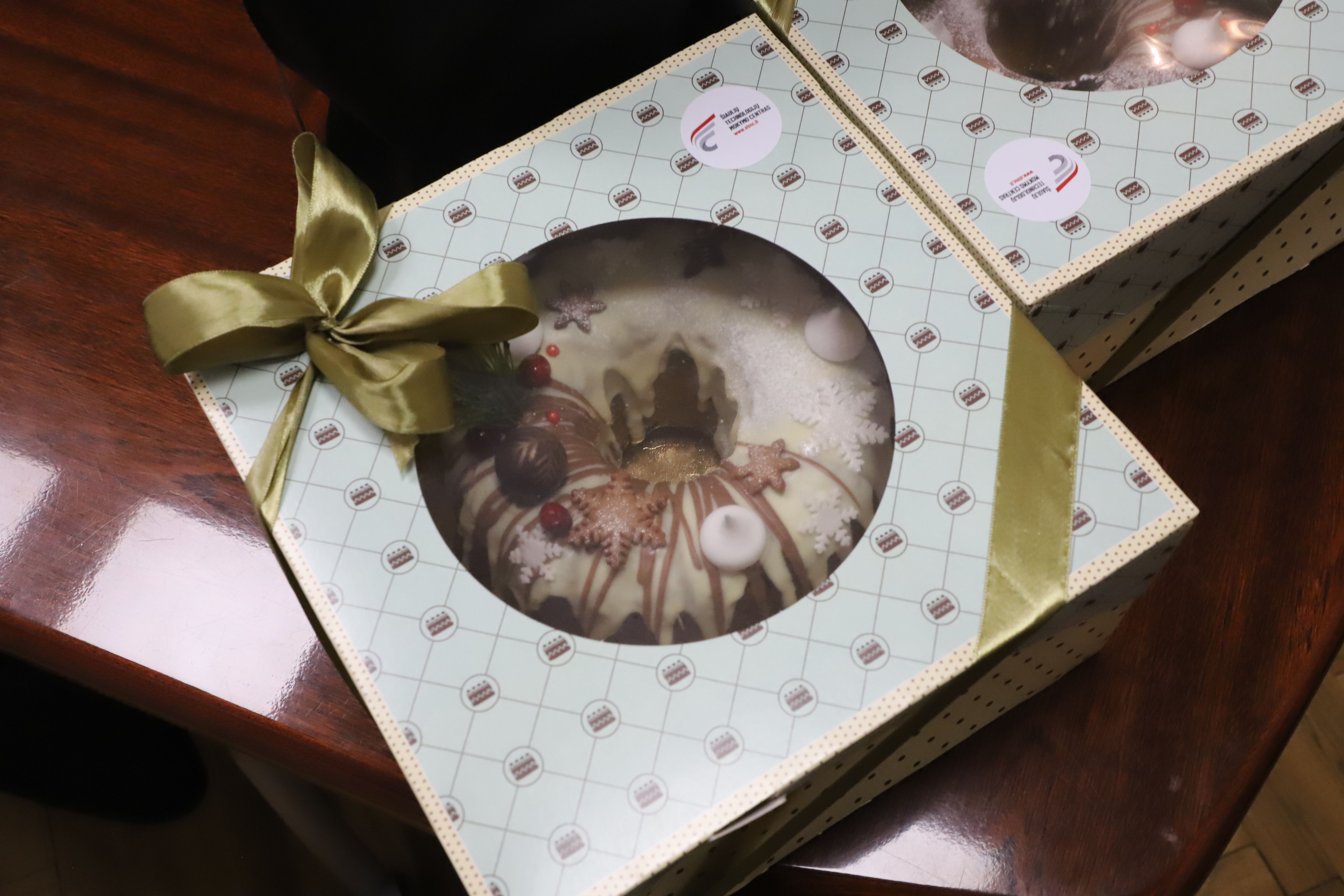 Artūras Visockas visų miesto gyventojų vardu padėkojo eglutes dovanojusiems šiauliečiams ir įteikė jiems simbolines dovanas – padėkos pyragus.