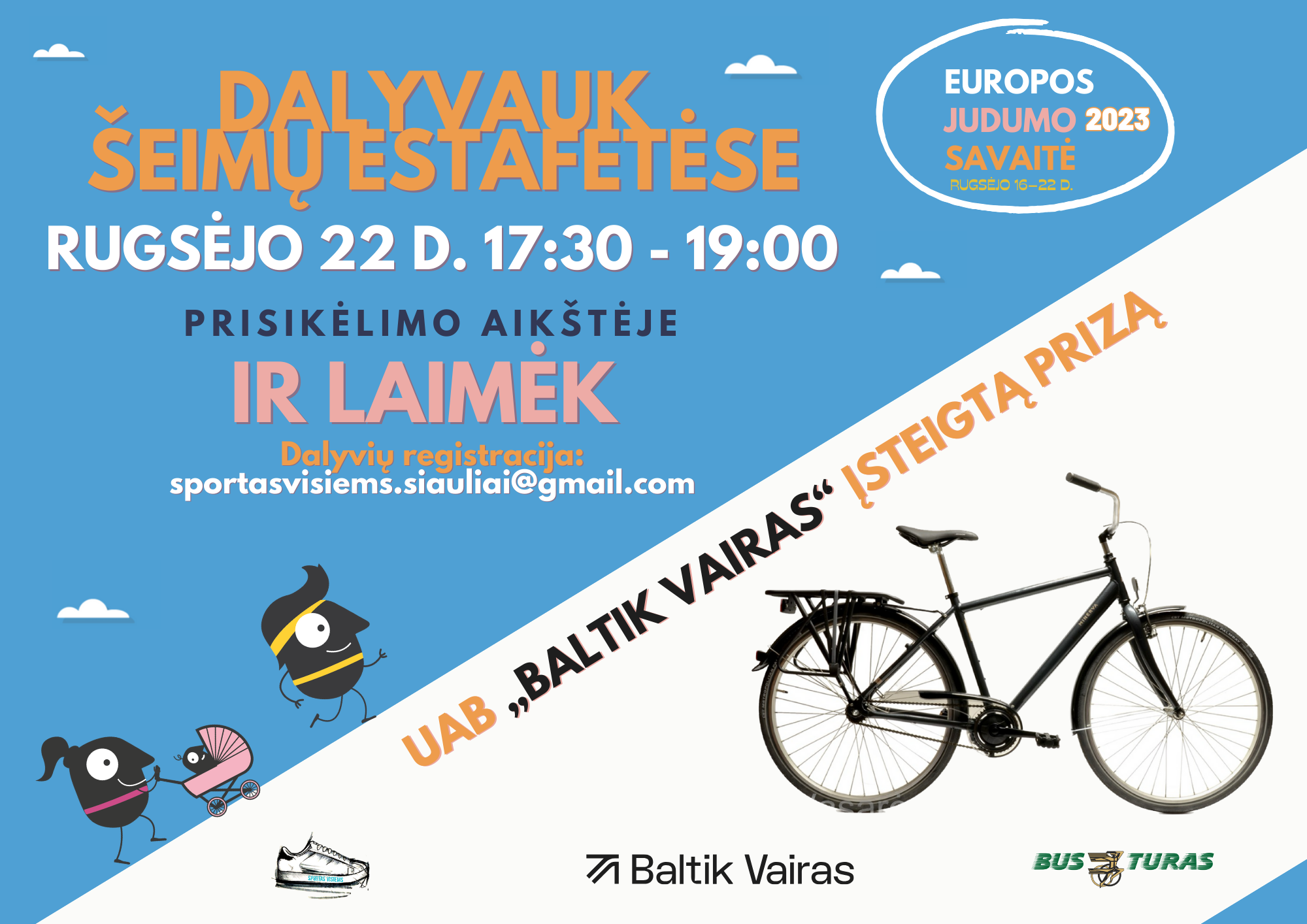 Mieste galime judėti įvairiais būdais, todėl Tarptautinės dienos be automobilio proga, Šiaulių lengvosios atletikos ir sveikatingumo centro „Sportas visiems“ komanda kviečia dalyvauti ir neįprastoje estafetėje.