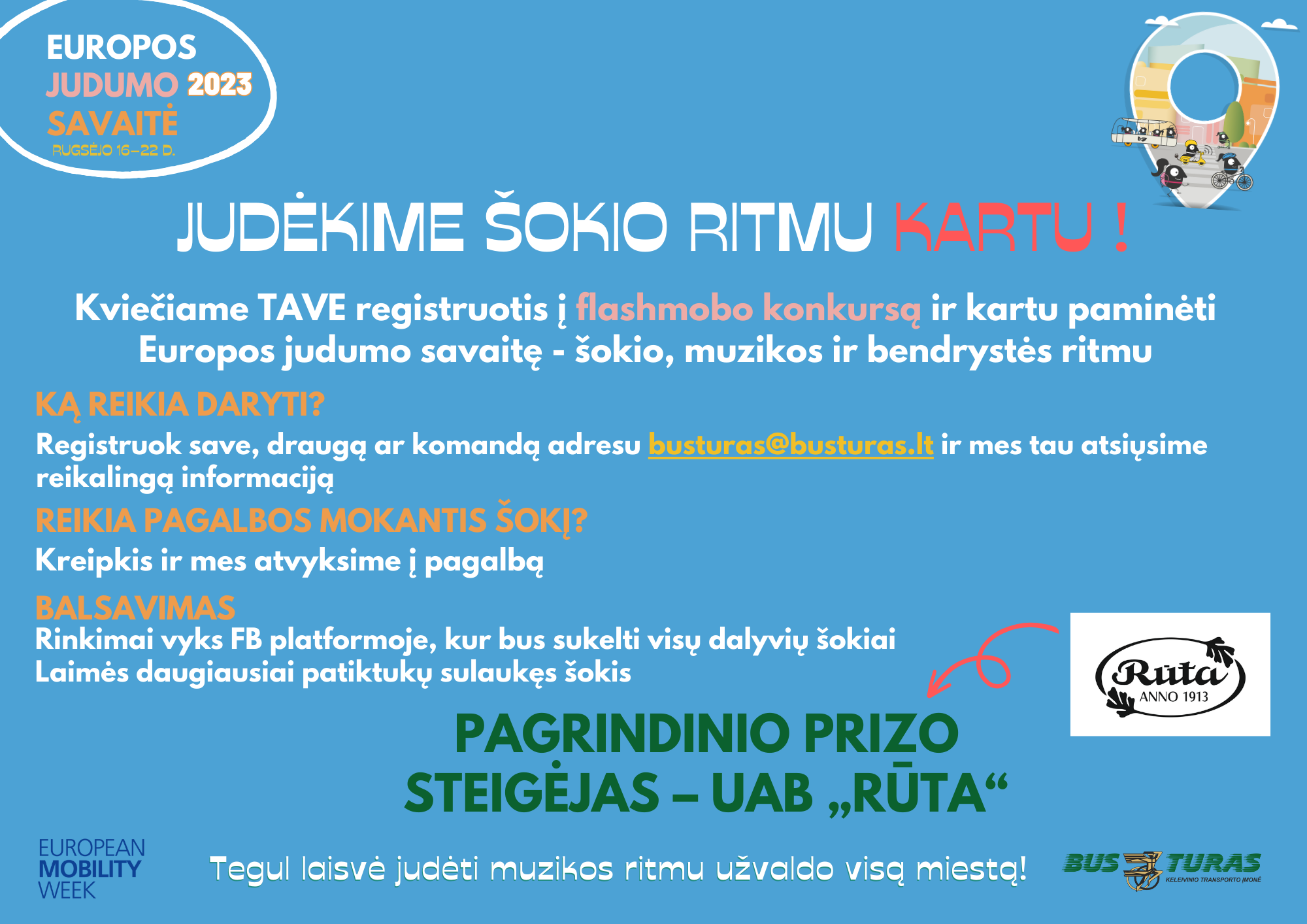 Rugsėjo 22 d. visus dalyvius kviesime atvykti į mūsų organizuojamą renginį ir visiems kartu pašokti.