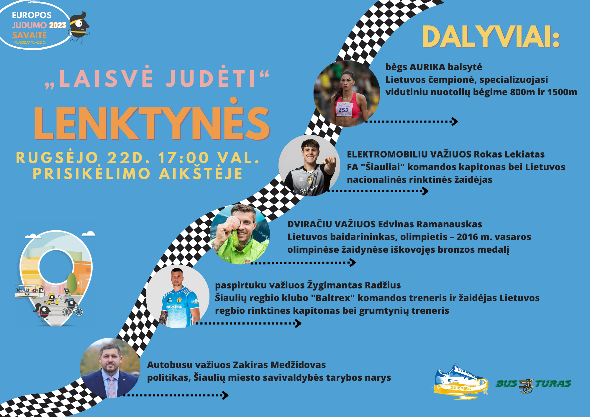 Šiais metais ir vėl bus organizuojamos tradicinėmis tampančios lenktynės „Laisvė judėti“. Lenktynėse nuo PC „Akropolis“ iki Prisikėlimo aikštės, kaip ir praėjusiais metais dalyvaus puikiai pažįstami šiauliečiai, kurie šią distanciją įveiks skirtingais būdais: bėgdami, važiuodami dviračiu, elektriniu paspirtuku, važiuodami autobusu ir elektromobiliu.
