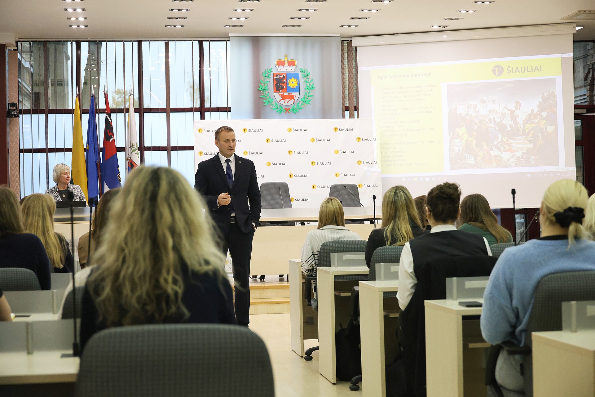Susitikimo metu meras pristatė svarbiausius Šiaulių miesto pasiekimus, mieste veikiančią savivaldą, įgyvendintus projektus ir ateities planus. Mokinių savivaldos atstovai iš įvairių miesto mokyklų aktyviai diskutavo ir uždavė klausimus apie jaunimo įsitraukimą į miesto gyvenimą, tvarumą bei Šiaulių įvaizdį. Jaunimą domino, kaip savivaldybė atsižvelgia į jų nuomonę priimdama sprendimus, kokios galimybės bus kuriamos, kad jauni žmonės norėtų likti ir kurti Šiauliuose, kaip jie gali įsitraukti į bendruomenės veiklas bei miesto projektus.