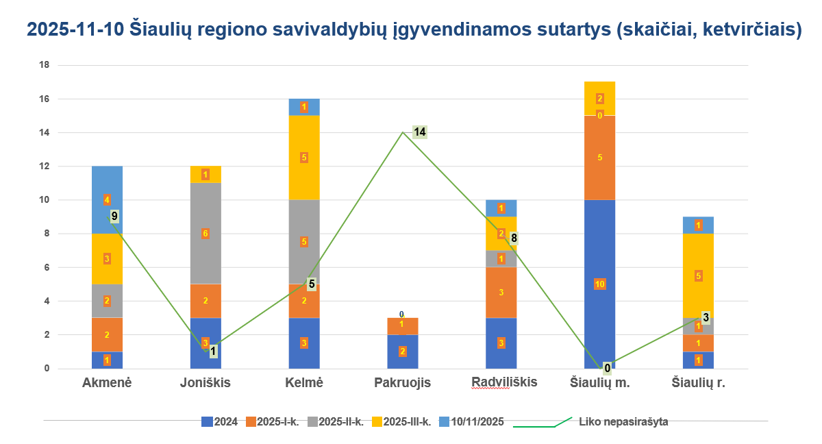 „Pagal esamas sutartis matome, kad didžiausias iššūkis mūsų regione dar laukia Pakruojo savivaldybės, kuri turi įgyvendinti dar 14 projektų. Tuo tarpu Šiaulių miestas planavimo etapą jau yra užbaigęs – visos sutartys pasirašytos“, – kalbėjo direktorius, pabrėždamas, jog Lietuva gali prarasti dalį lėšų, jei jų nespės įsisavinti iki nustatyto termino.