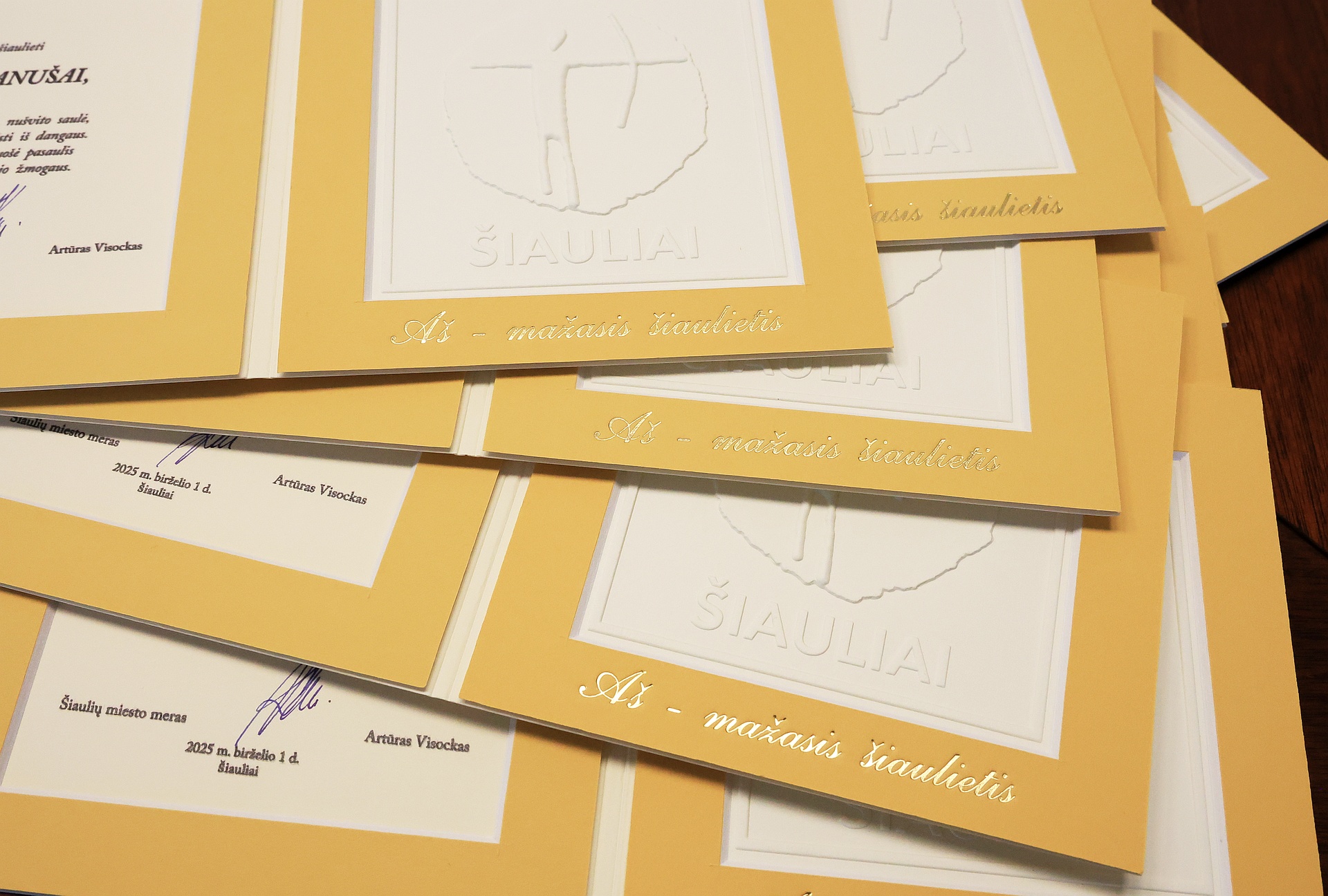 Šiaulių miesto meras Artūras Visockas baigia pasirašyti šimtus patiems mažiausiems šiauliečiams skirtų pažymėjimų. Jauniausieji miesto gyventojai, gimę nuo 2024 m. gegužės 1 d. iki 2025 m. gegužės 1d., su savo mamytėmis, tėveliais ir kitais šeimos nariais juos galės atsiimti birželio 1 d. nuo 13.00 iki 15.00 valandos Šiaulių miesto centriniame parke vyksiančioje šventėje.