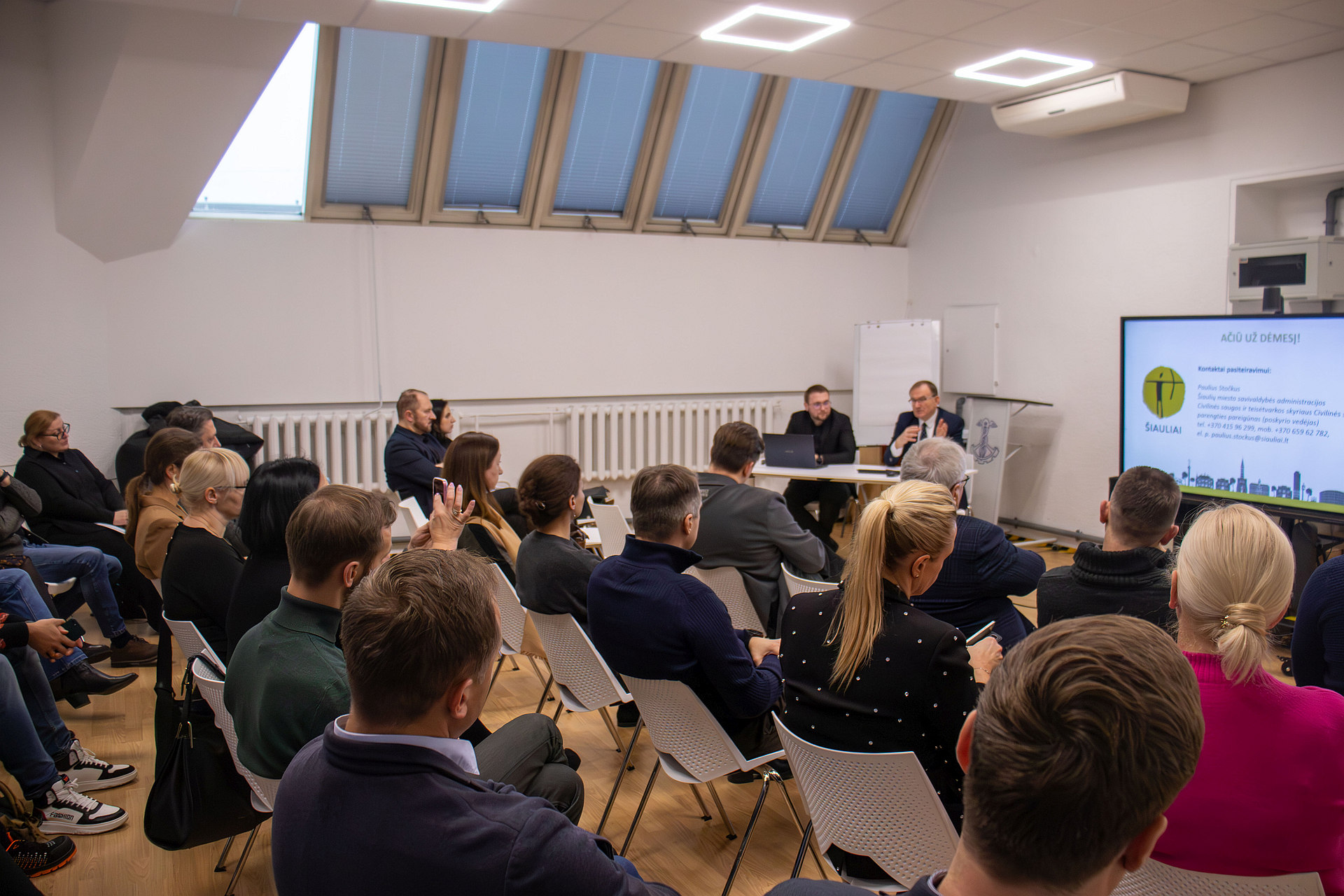 Susitikimo metu Šiaulių miesto savivaldybės Civilinės saugos ir teisėtvarkos skyriaus Civilinės saugos poskyrio vedėjas Paulius Stočkus pristatė, kokius kriterijus atitinkančioms įmonėms privaloma parengti Ekstremaliųjų situacijų valdymo planą, kokias būtinųjų priemonių atsargas įmonės privalo kaupti bei kaip įstatymas įpareigoja organizuoti darbuotojų mokymą ir pratybas.