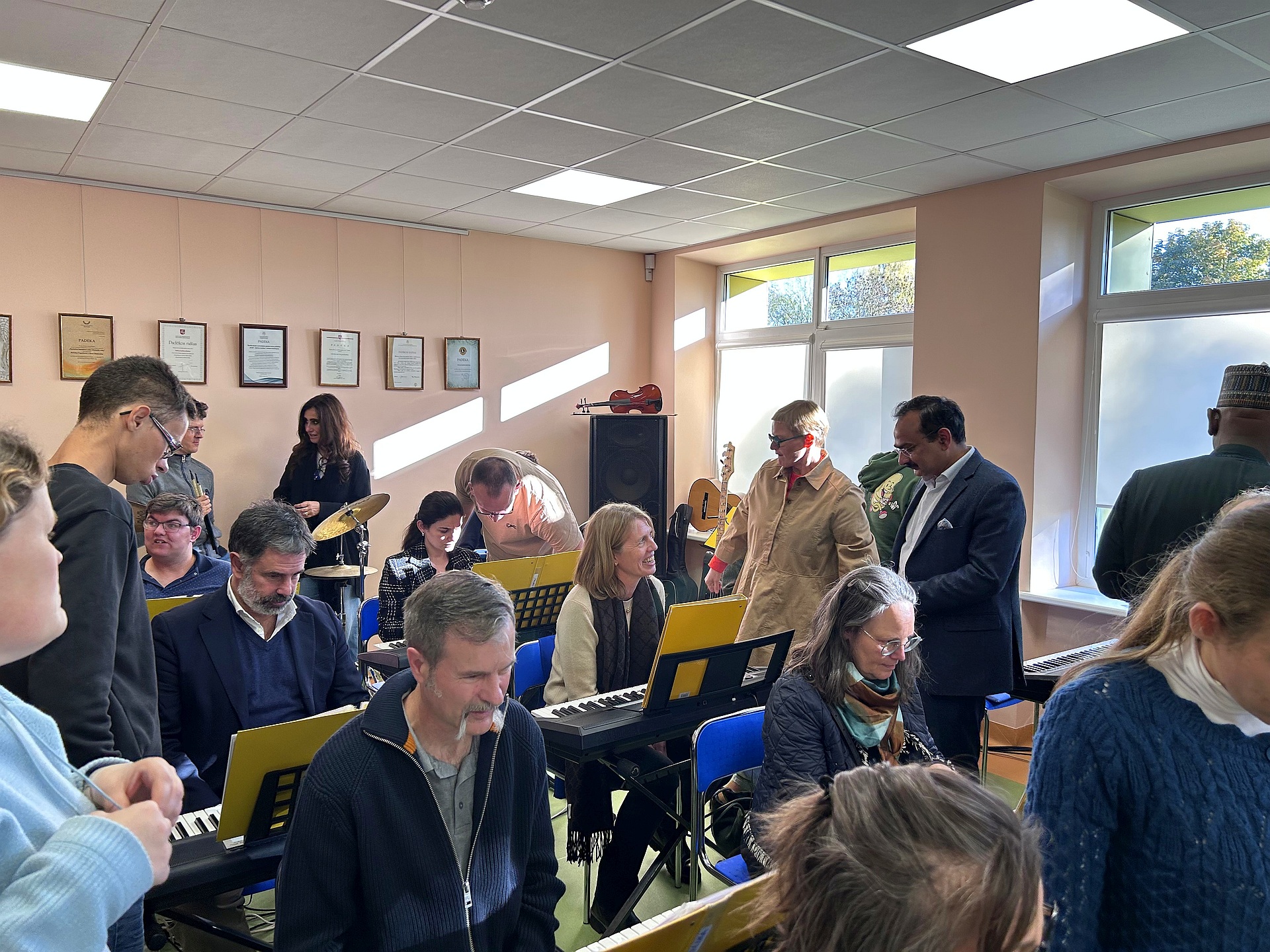 Vėliau, Šiaulių miesto savivaldybės globos namų dienos centre „Goda“, kuris teikia paslaugas psichikos ar intelekto negalią turintiems asmenims. Svečiai supažindinti su miesto socialinės politikos principais, jiems buvo pristatytos dienos centro veiklos. Ambasadoriai ne tik išgirdo spalvų muzikos orkestro atliekamus kūrinius, bet ir patys sėdo prie muzikos instrumentų ir, padedami dienos centro lankytojų, atliko muzikinį kūrinį.