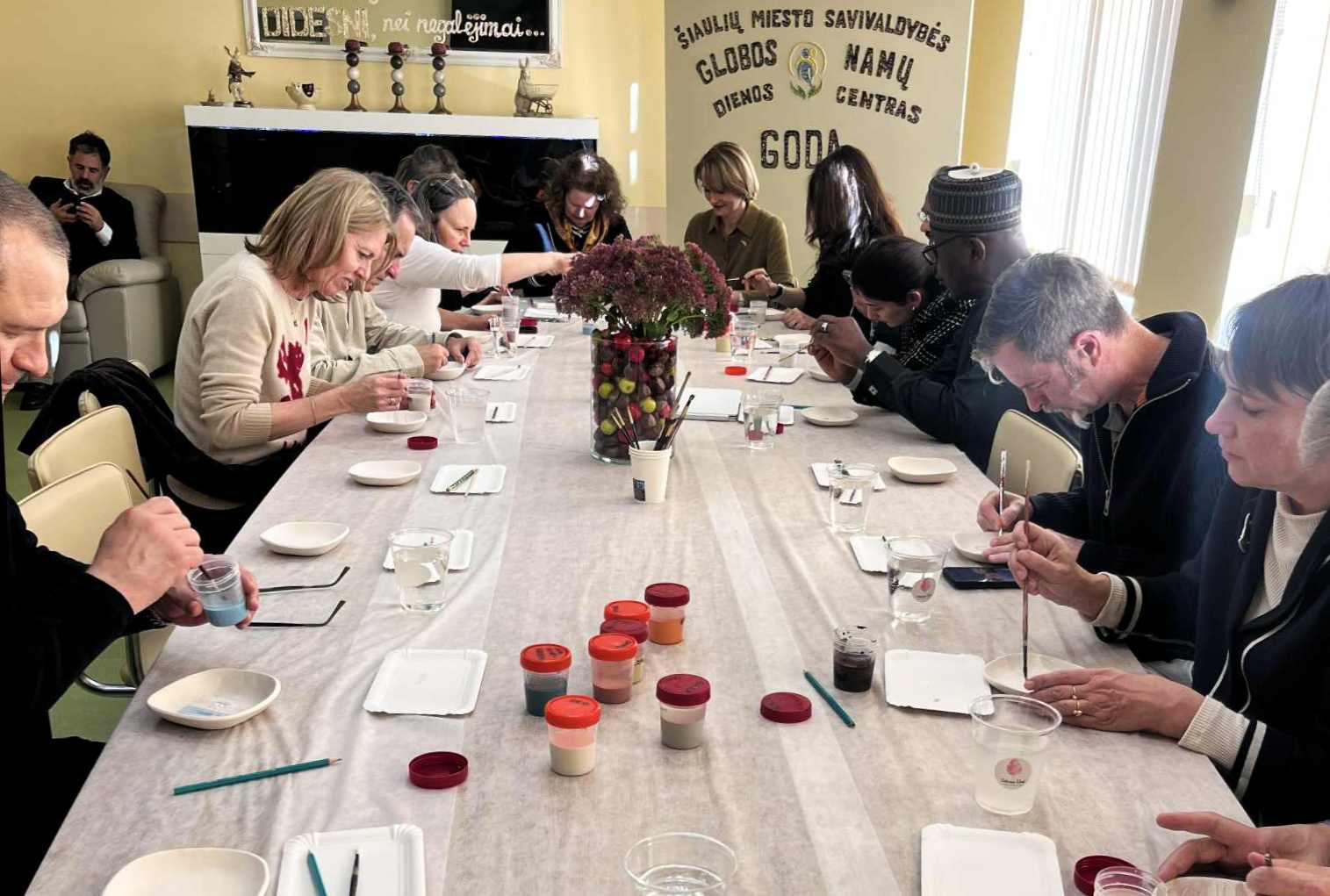Išvykstant svečiams, dienos centro lankytojai padovanojo savo rankomis sukurtas simbolines dovanėles su Lietuvos atributika – nuoširdūs prisiminimai į kuriuose telpa dėkingumas, kūryba ir meilė savo šaliai.